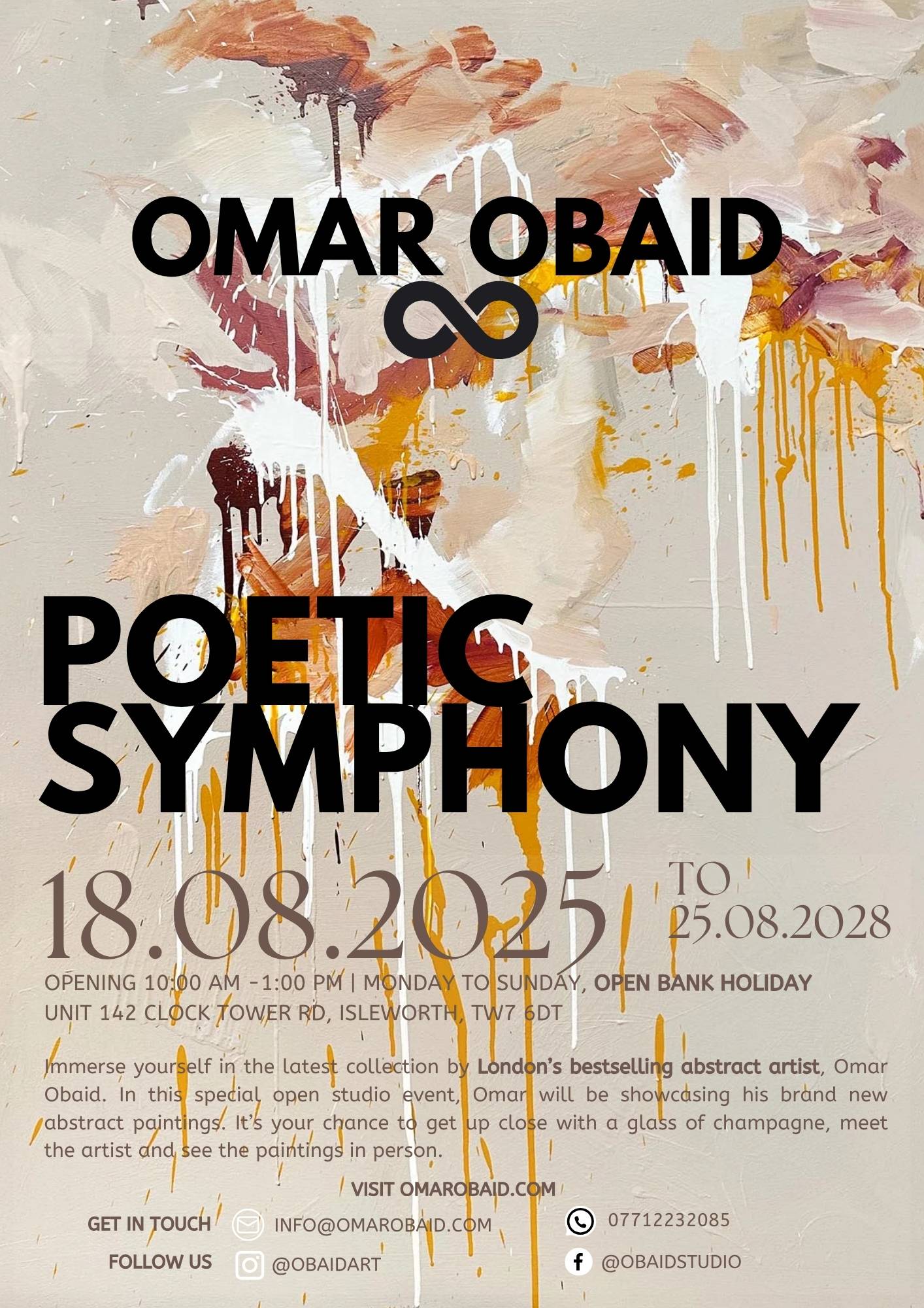 Find out about the meanings behind each painting. Bring a friend, grab a glass of champagne, meet the artist in his studio and immerse yourself in Omar's latest collection of original paintings.
