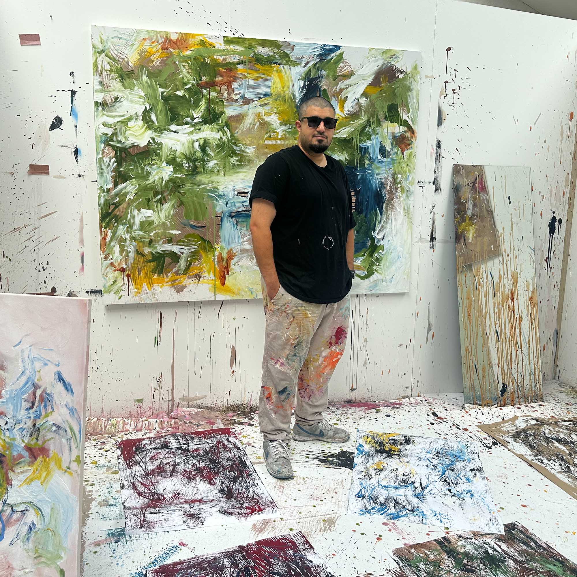 Omar is a full-time independent abstract artist and paints in his studio in West London. Get in touch if you'd like to book an appointment. Omar created a sanctuary where he can express himself through art by applying his ideas to canvas and immersing himself in his process.